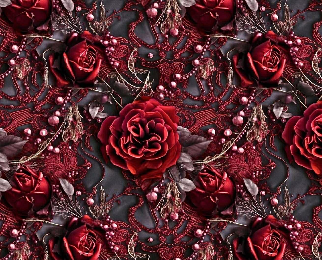 Dresówka pętelka druk cyfrowy koronkowe róże