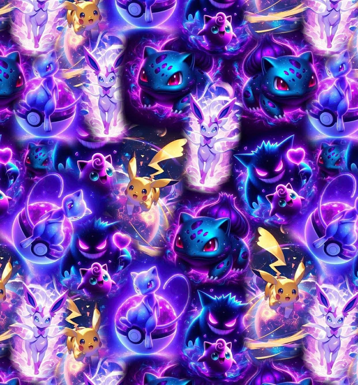 Dresówka pętelka druk cyfrowy pokemon fiolet