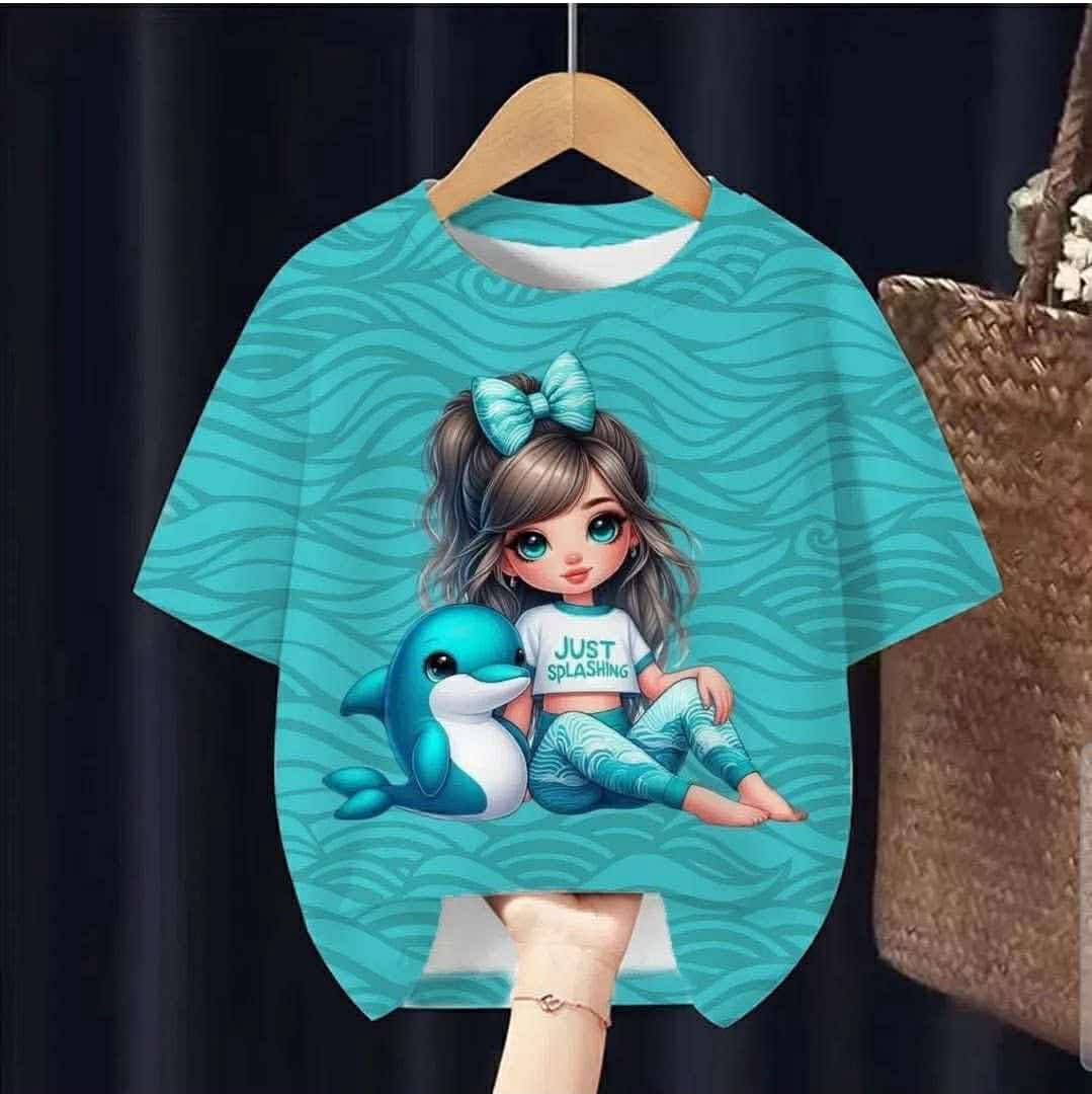 Teplákovina druk cyfrowy dziewczynka z delfinkiem - panel 85x180
