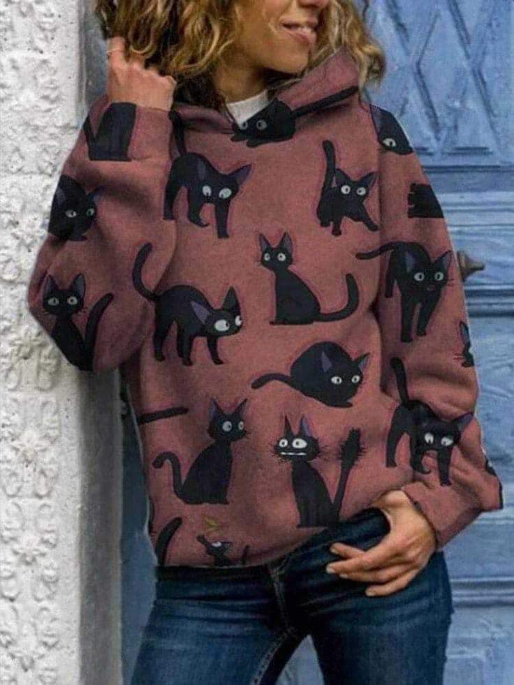 Dresówka pętelka druk cyfrowy kotki na brązie