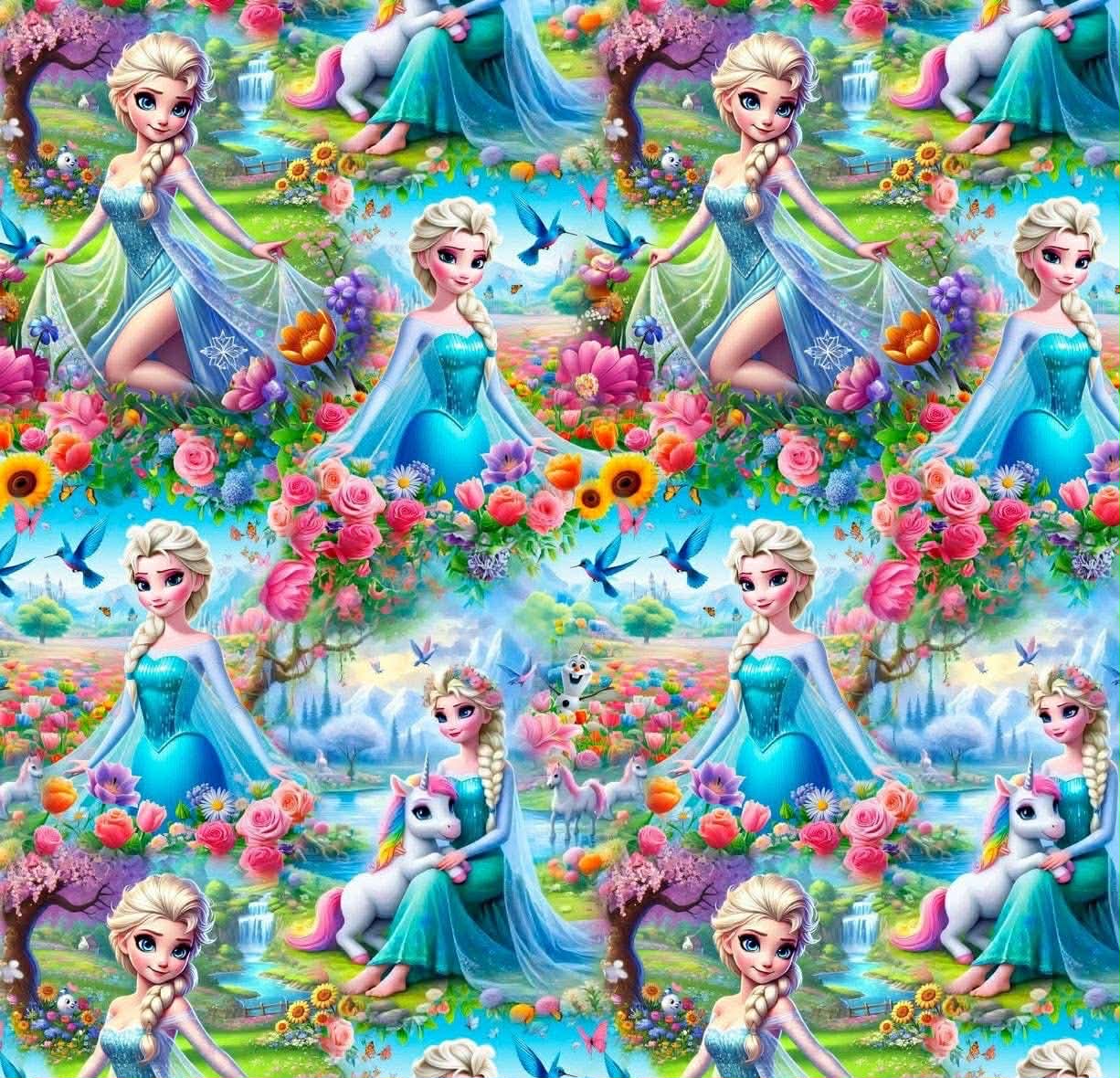 Dresówka pętelka druk cyfrowy księżniczka w ogrodzie