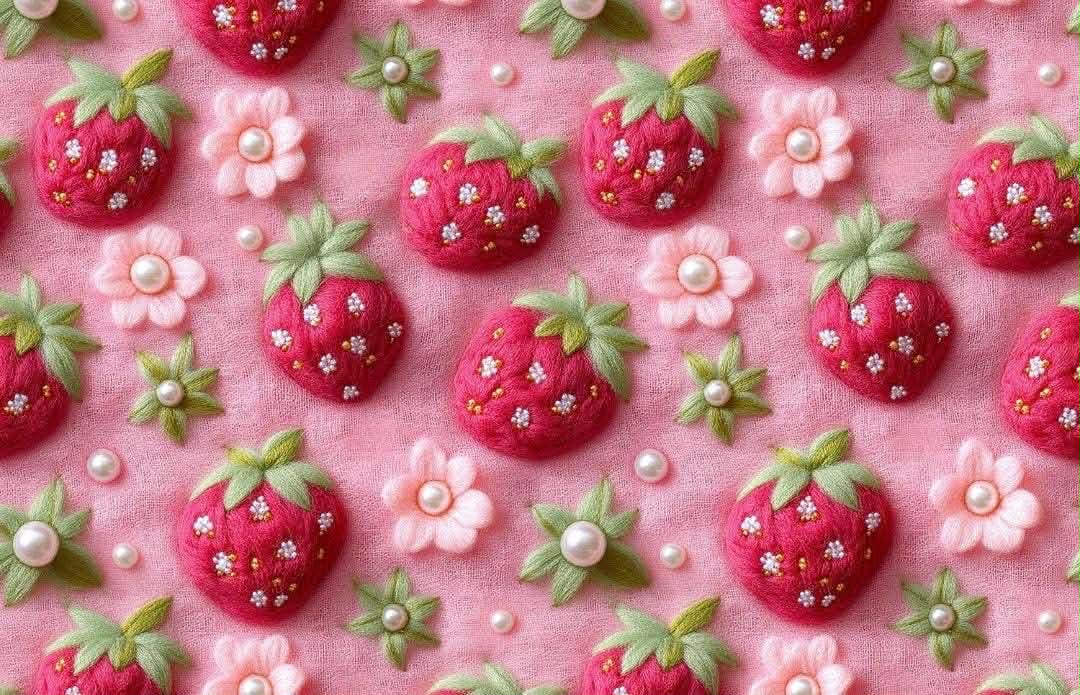 Dresówka pętelka druk cyfrowy truskaweczki